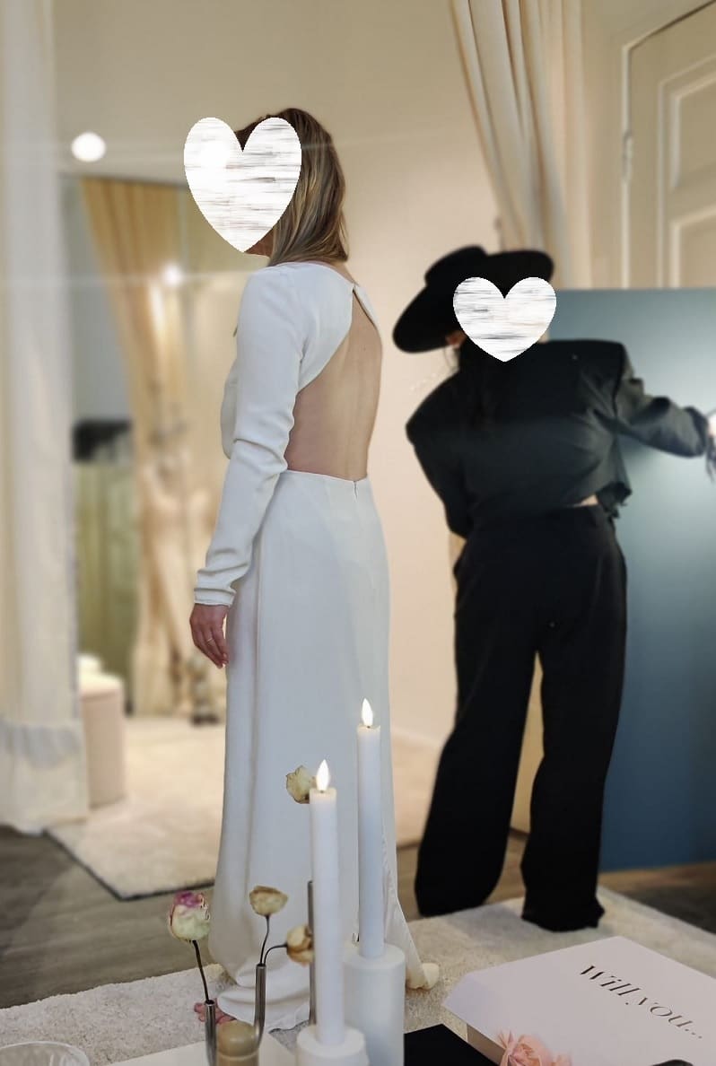 Morsiamen pituus + korko: 165 + 5cm