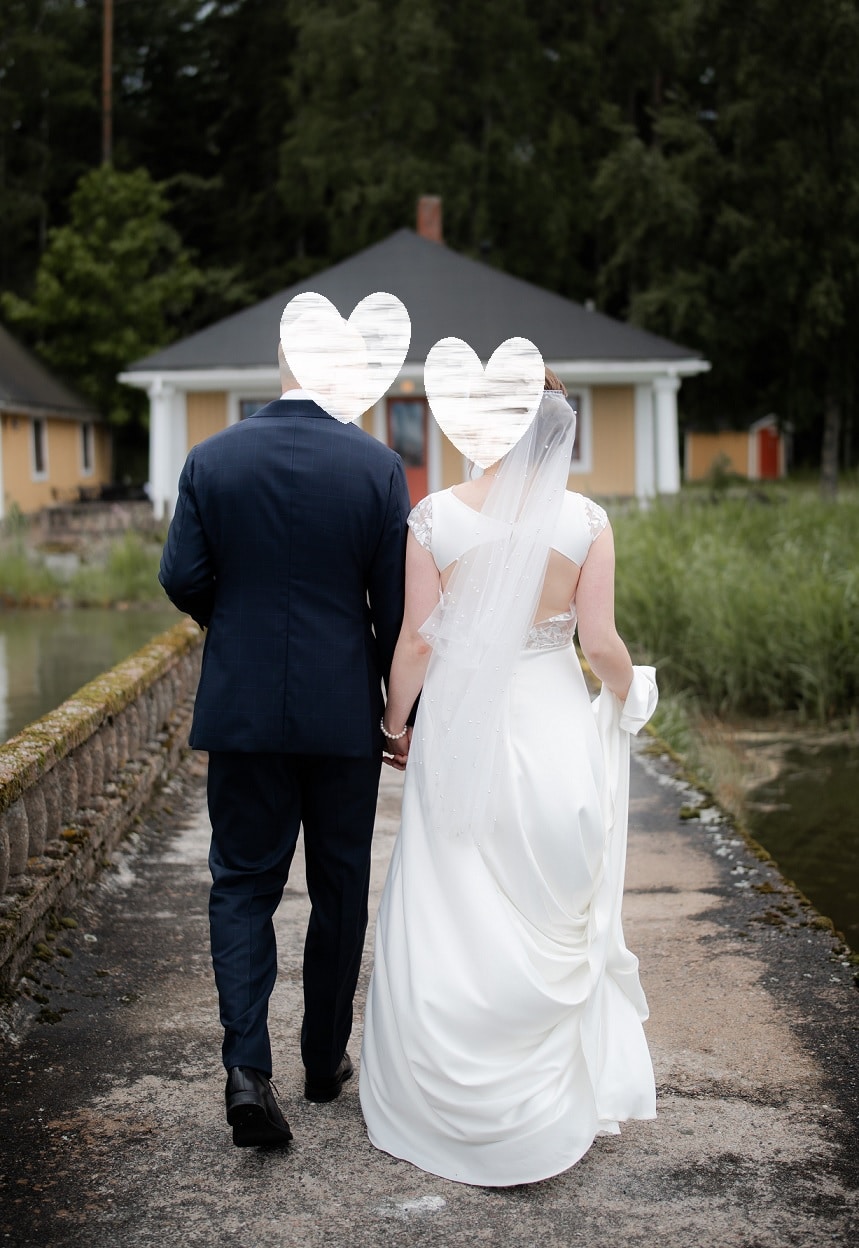Morsiamen pituus + korko: 160 + 8cm