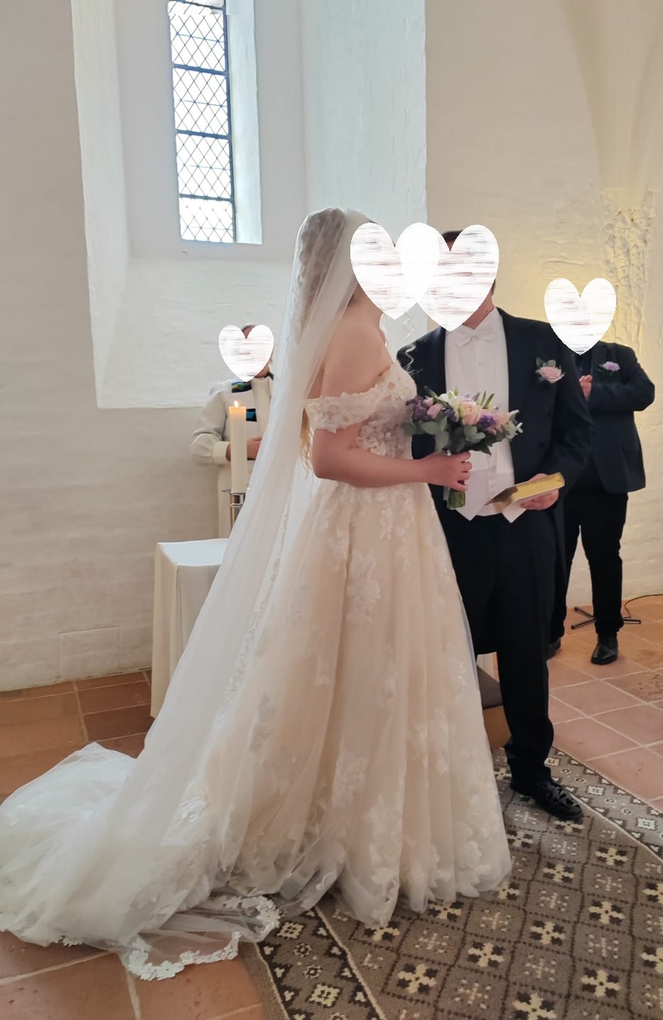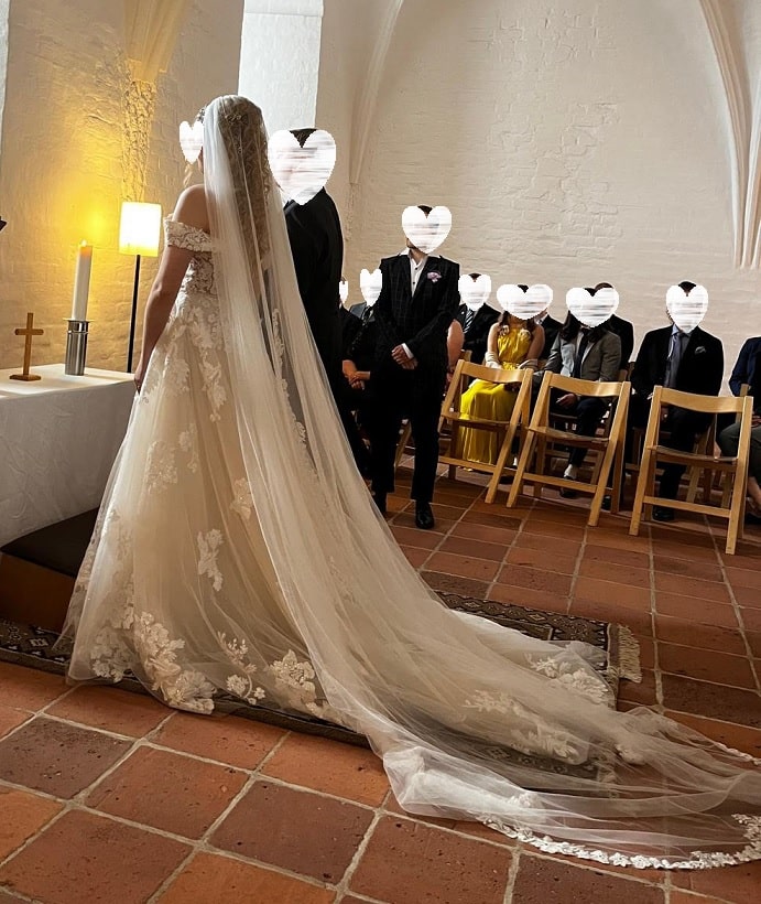 Morsiamen pituus + korko: 174 + 5cm