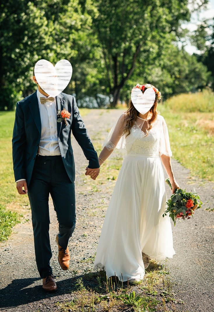 Morsiamen pituus + korko: 164 + 3cm